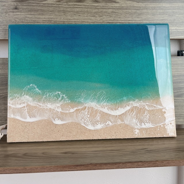木製 boxに砂とレジンを重ねました。 海を切り取って箱に詰めたような… リアルな海を表現しました。 穏やかな波と透明感のある海をイメージして製作しました。 サイズ 約22㎝×13.8㎝ 高1.8cm (金具付き) 小物置きに使用したり、 壁に飾ることもできます(^^) ※金具付き ※エポキシ樹脂は熱に弱いため、熱いカップ等を置 くのはおすすめできません。 ※気をつけてはいますが、ハンドメイドなので表面に傷やホコリ、凹凸がある場合があります。 ※劣化を防ぐため直射日光を避けた場所で飾っていただくことをオススメします。 ※ご覧いただく環境によっては色彩が画像とは多少異なって見える場合がございます。