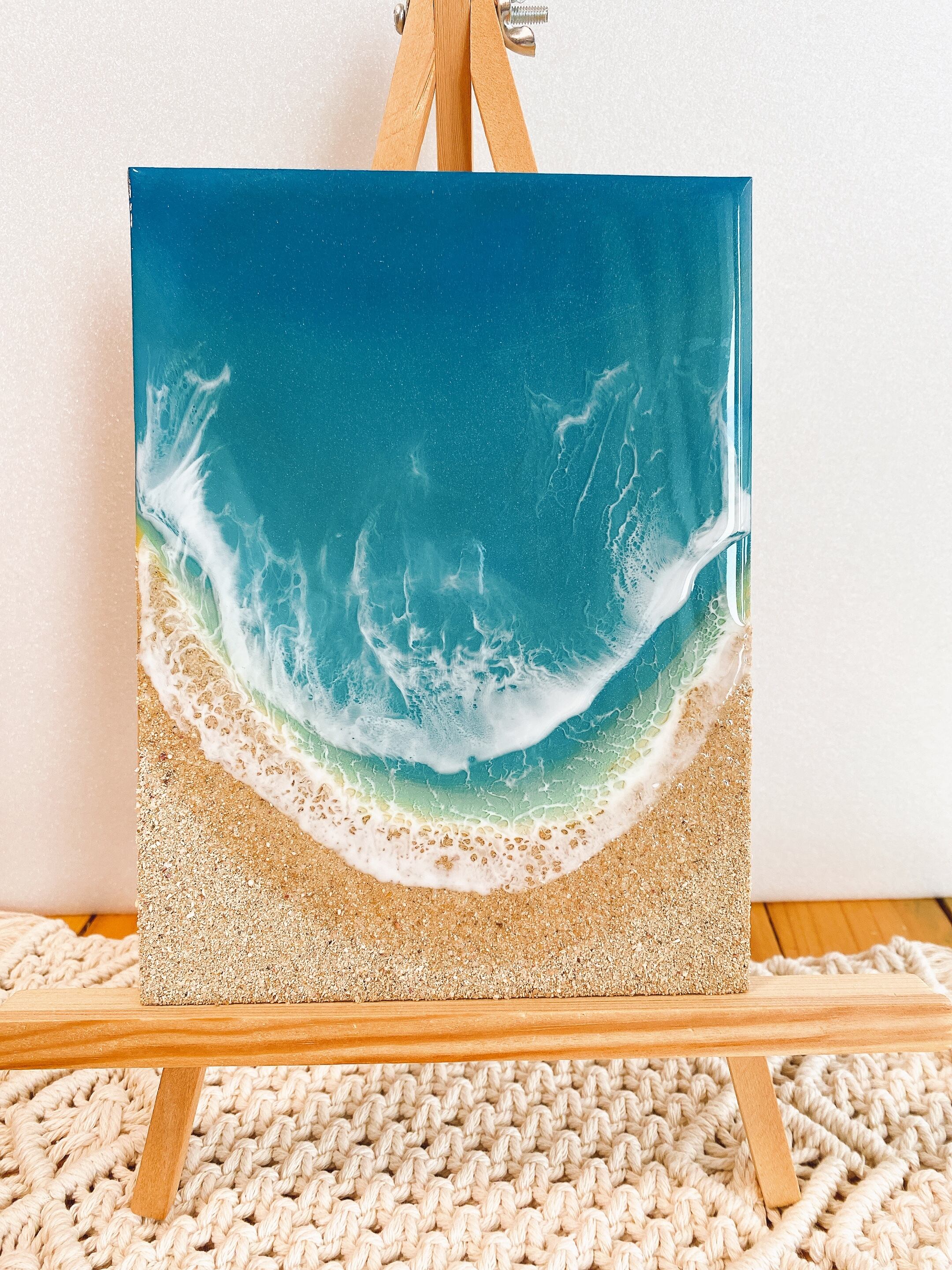 沖縄の砂を使用し、よりリアルな海を表現しました。 レジンを重ね層を作り、奥行きと透明感を出しています。