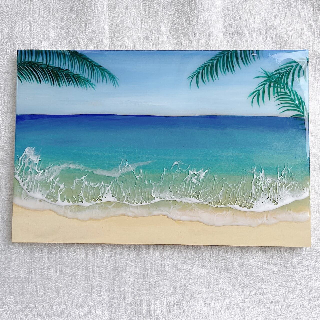 また、ヤシの葉を描くことにより南国の海を思わせるイメージで製作しました。