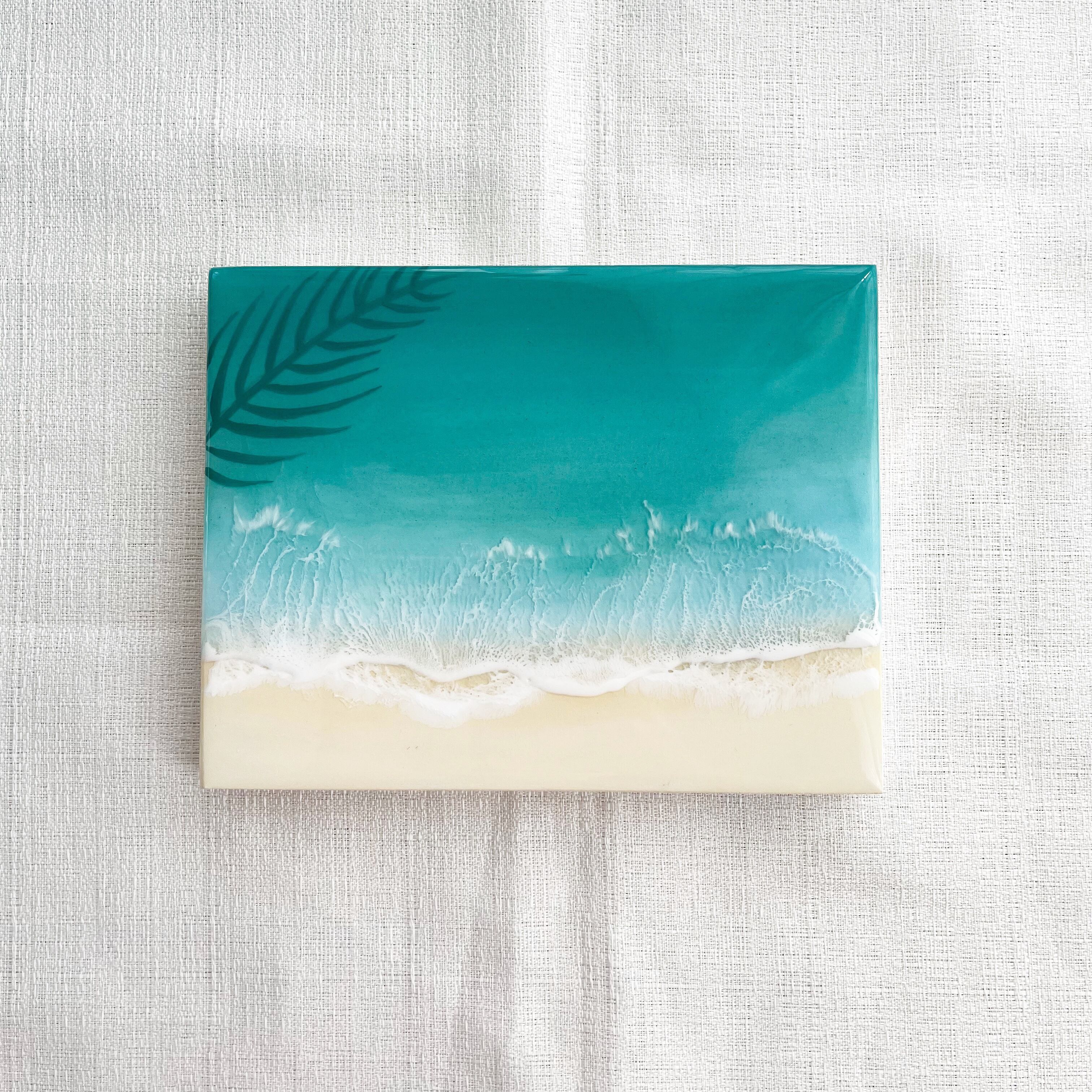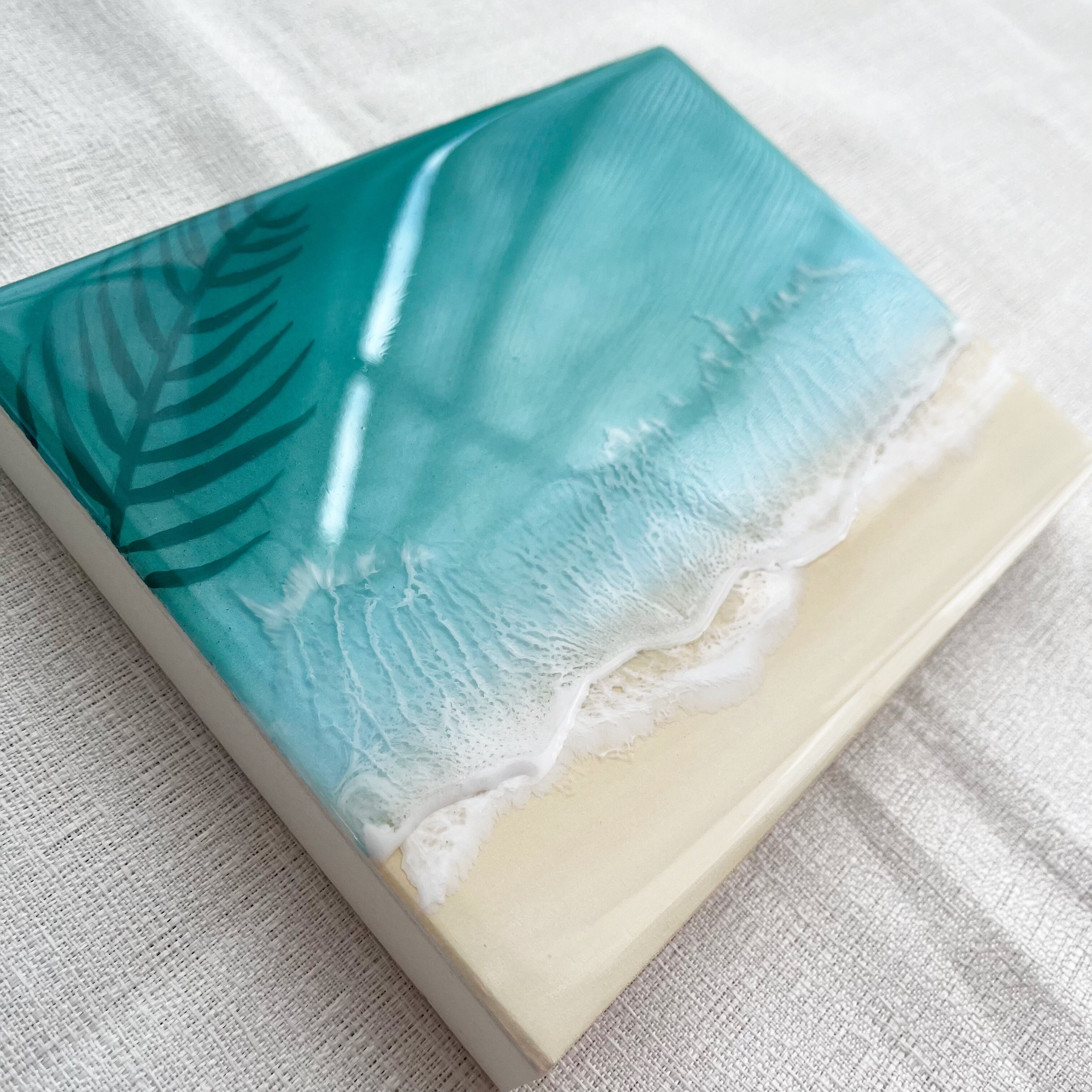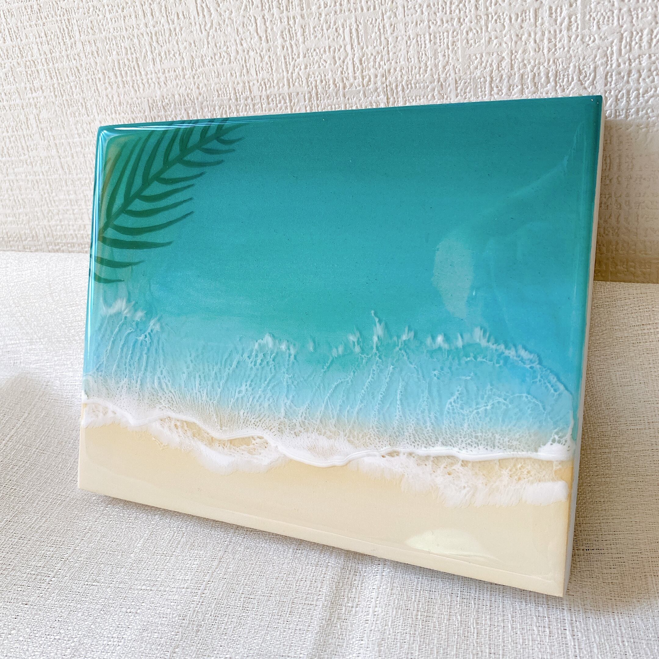 シナベニアのウッドパネルに、エポキシ樹脂を着色し、層を重ねて奥行きと透明感を出しています。