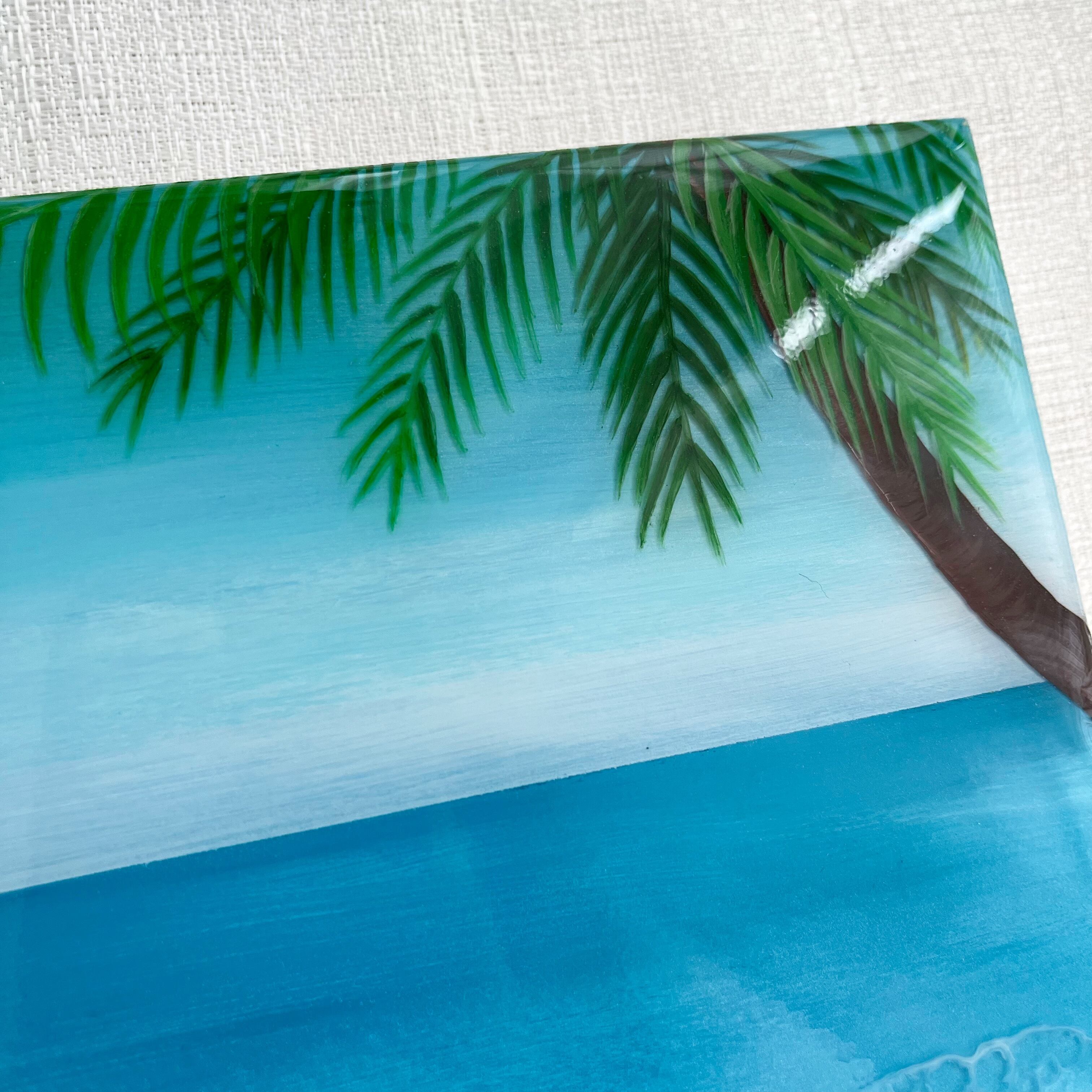 シナベニアのウッドパネルに、エポキシ樹脂を着色し、層を重ねて奥行きと透明感を出しています。
