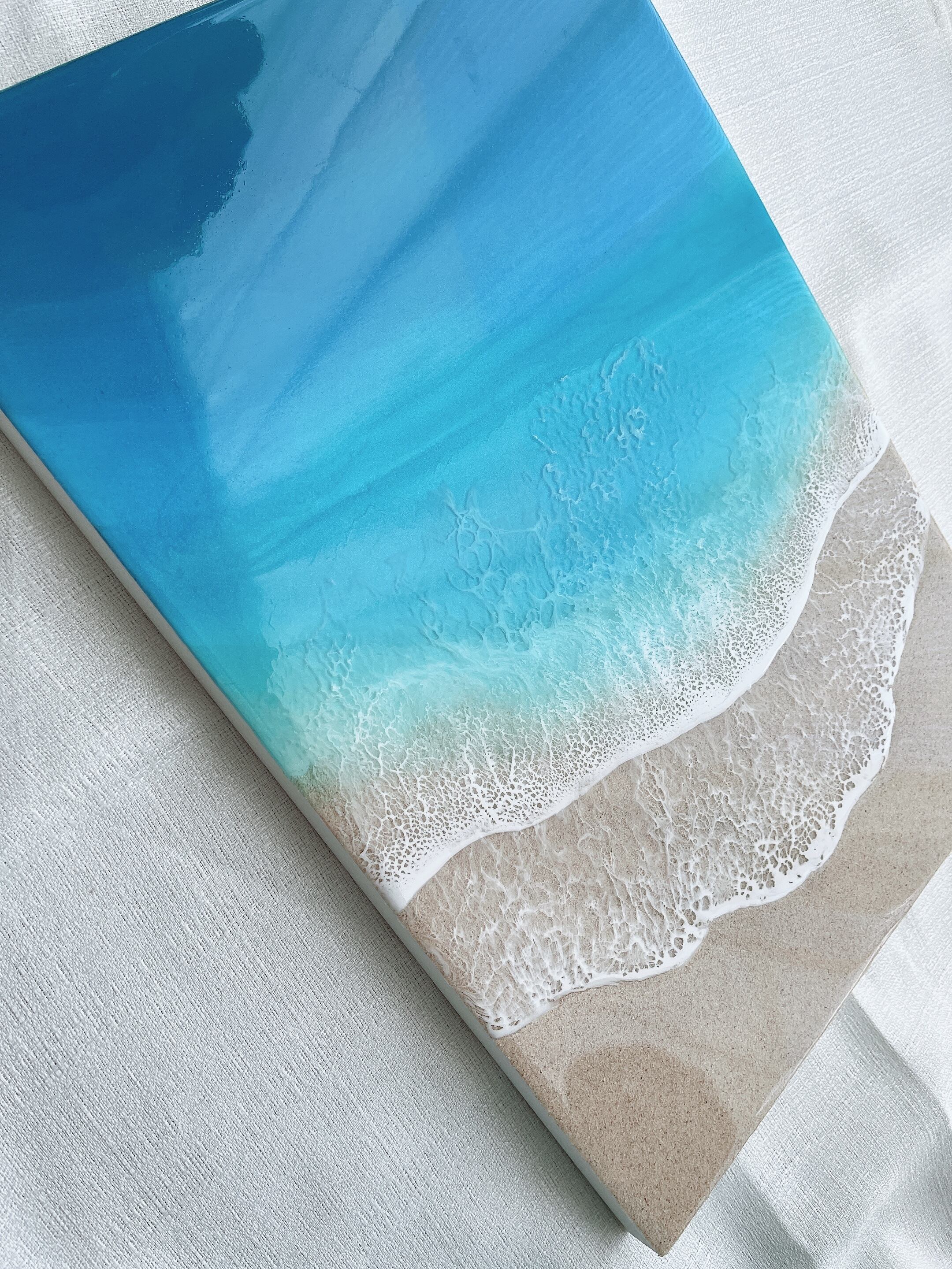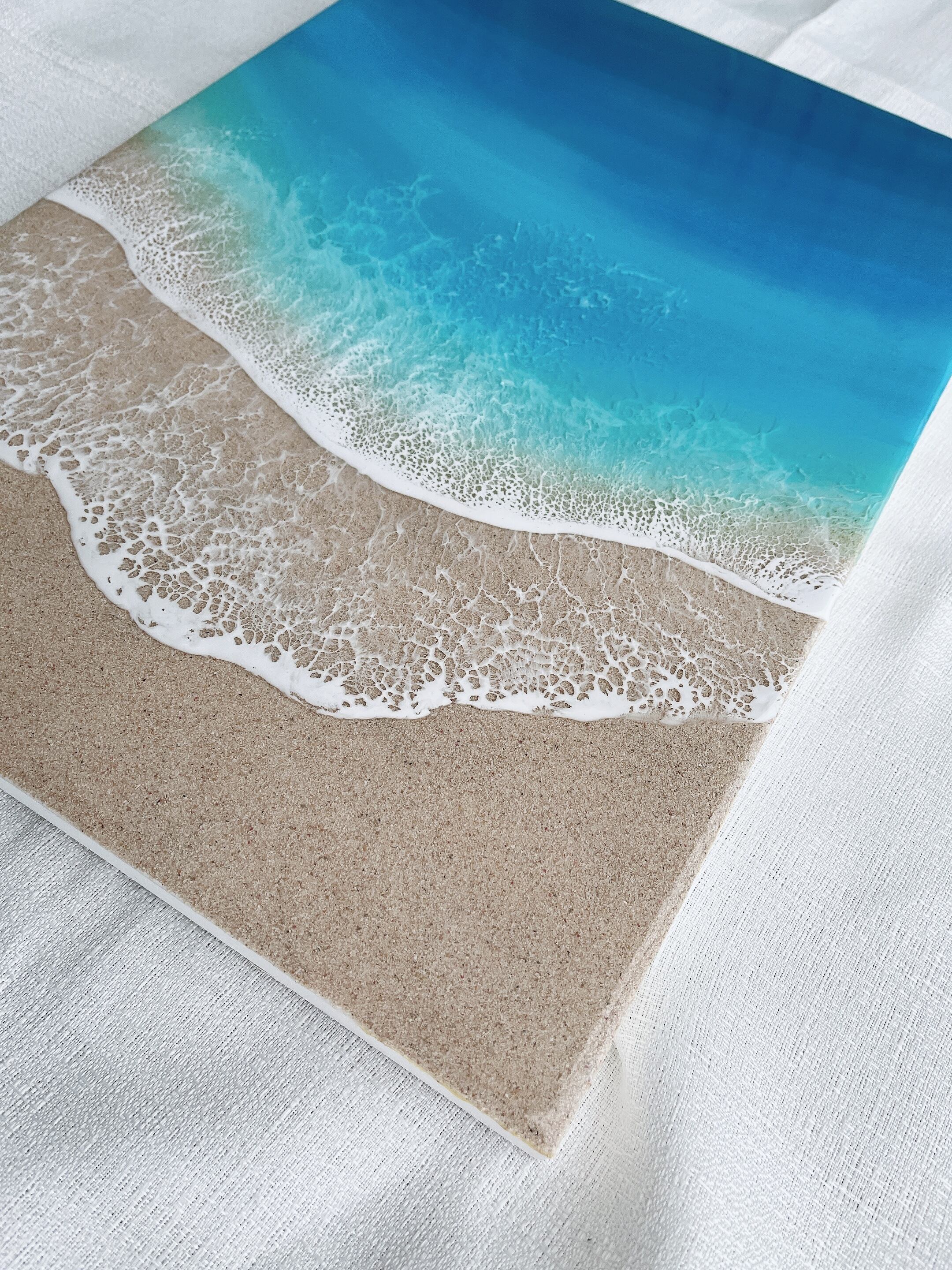 シナベニアのウッドパネルに、エポキシ樹脂を着色し、層を重ねて奥行きと透明感を出しています。