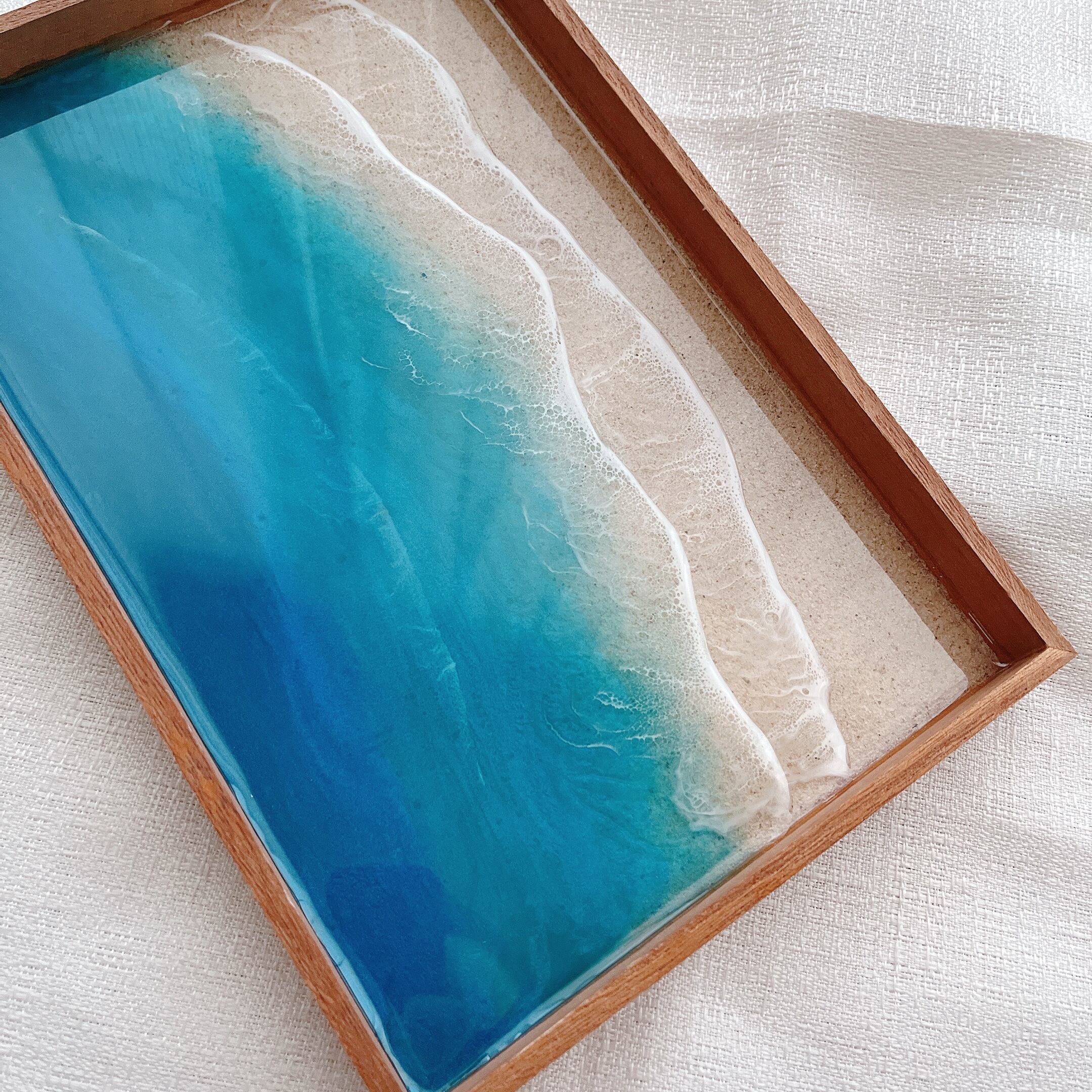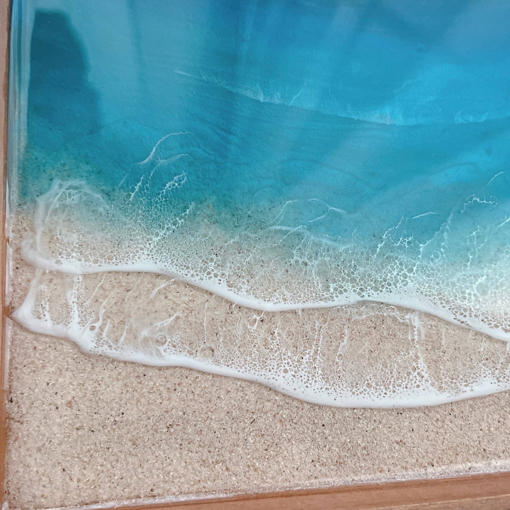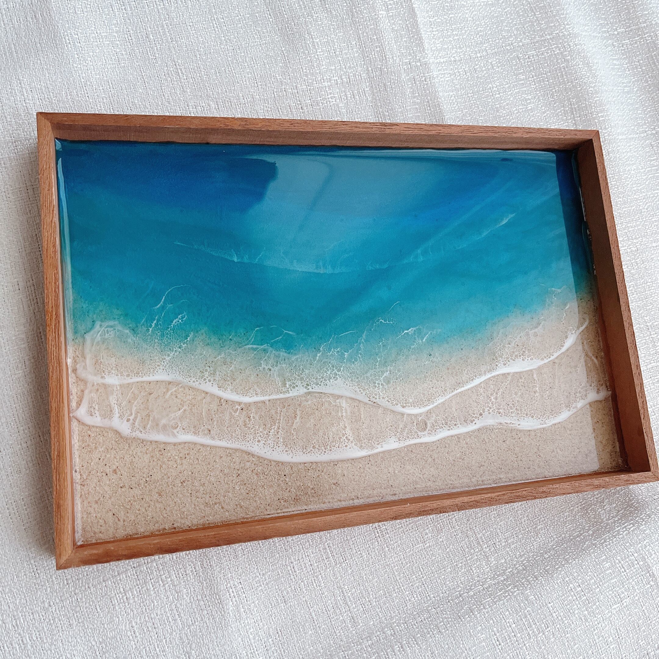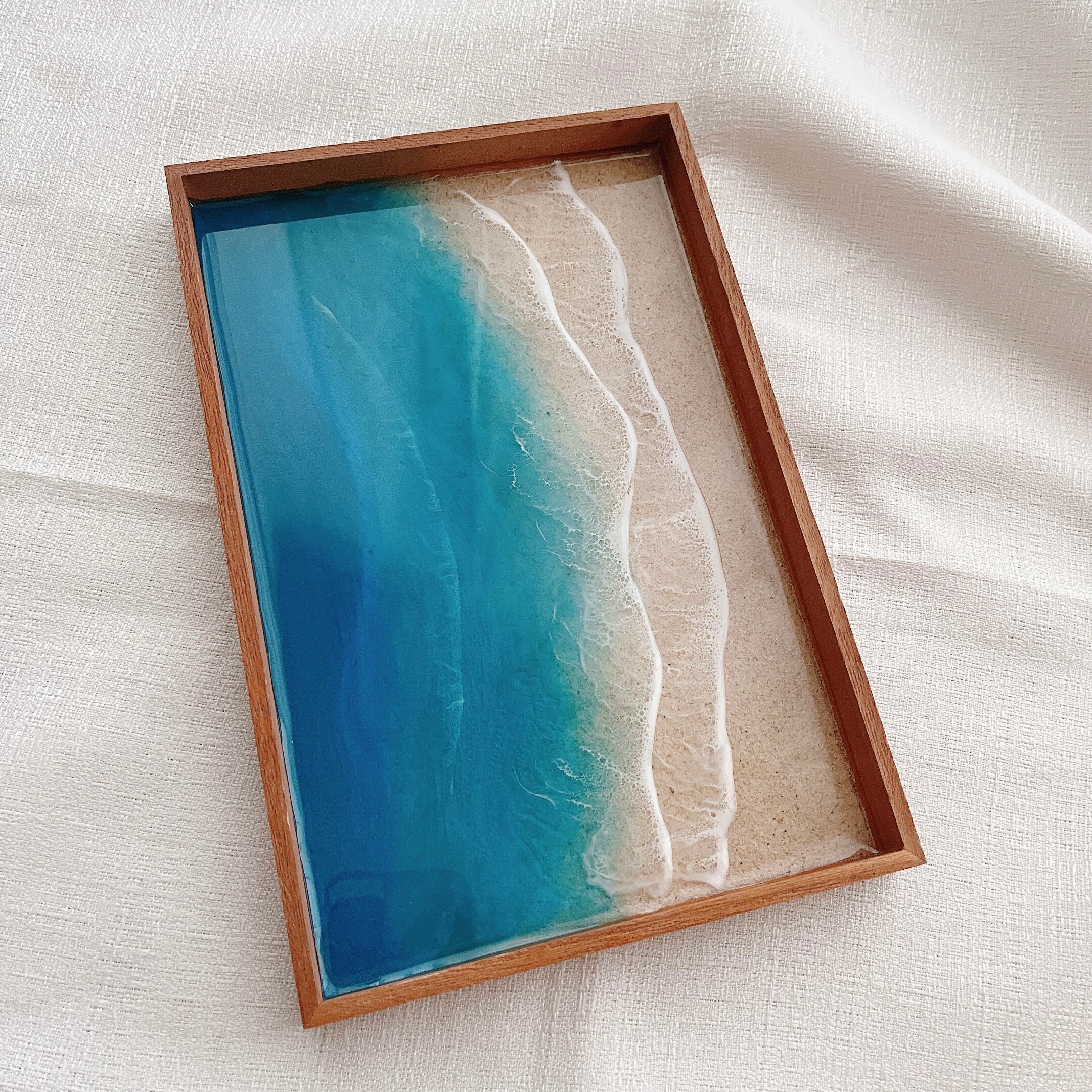 木製 boxに沖縄の砂とレジンを重ねました。
