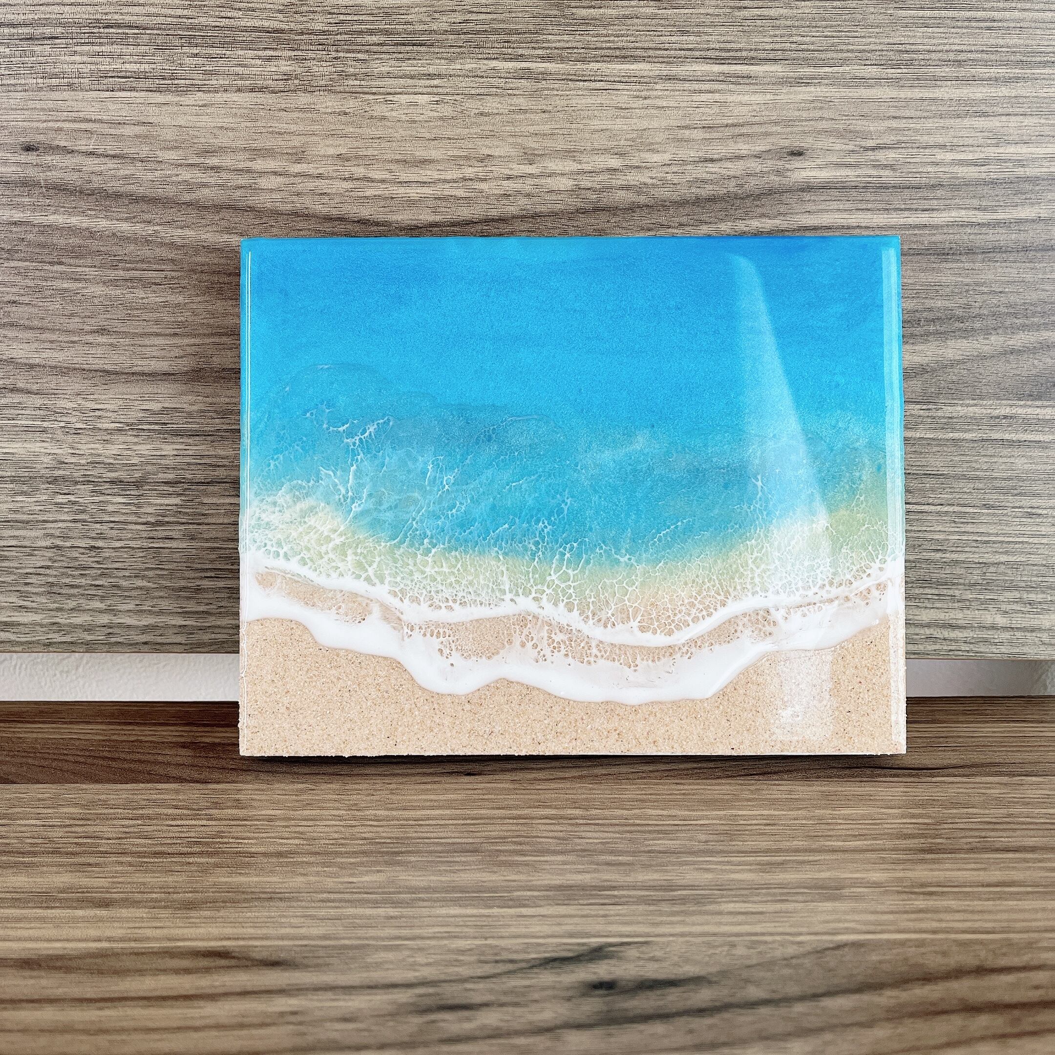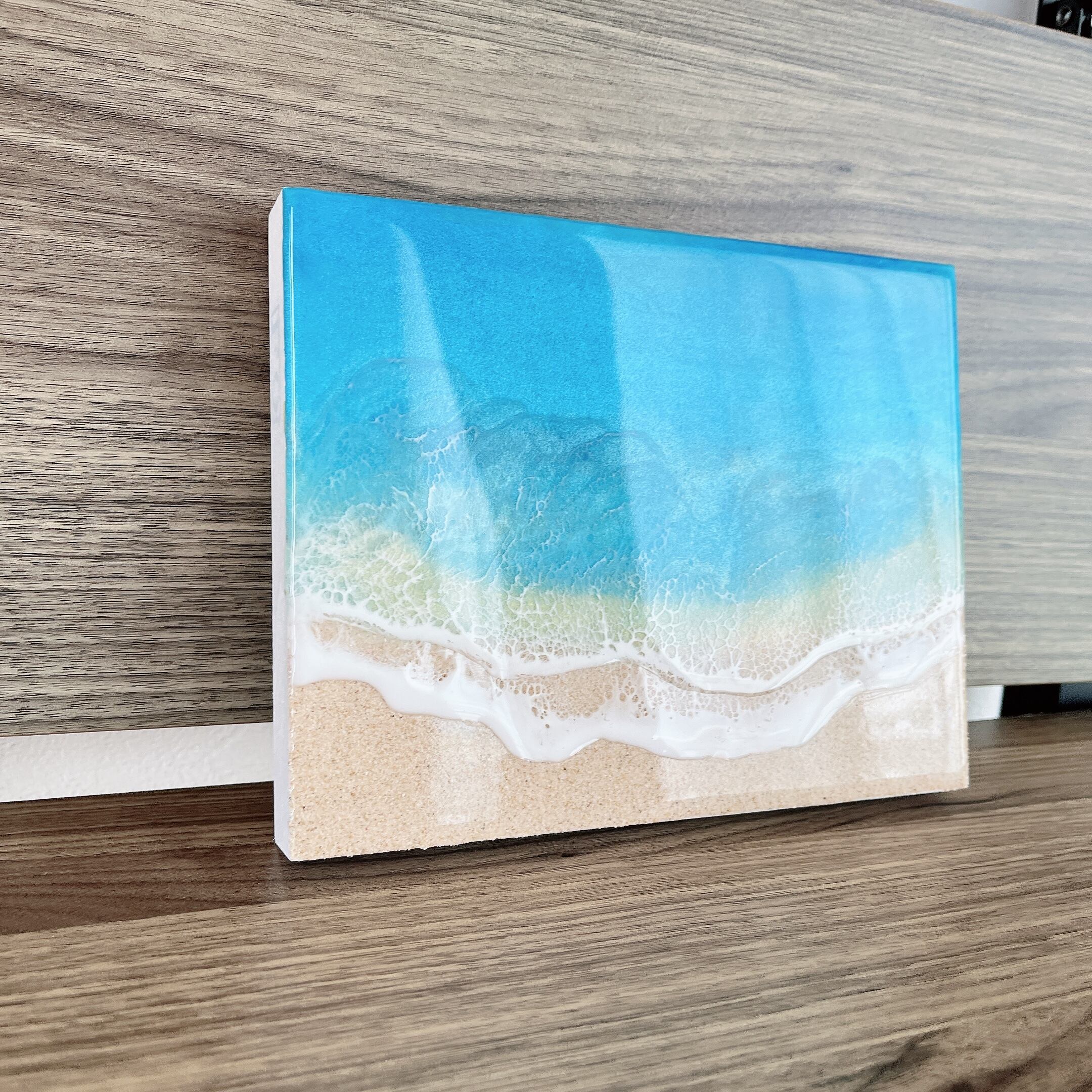 砂の上にレジンを重ねて、全体的にツヤツヤとした透明感のある仕上がりです。