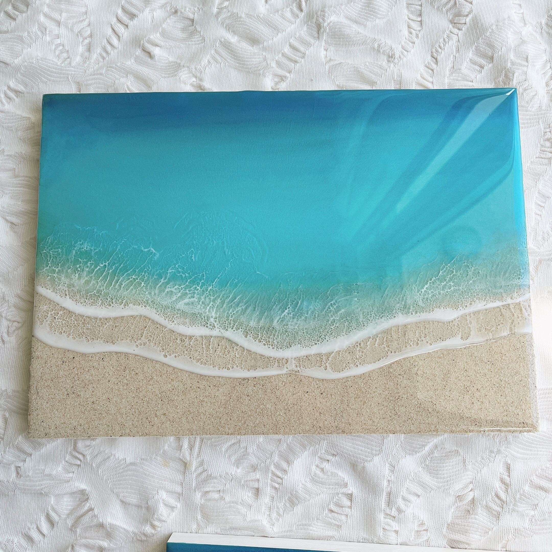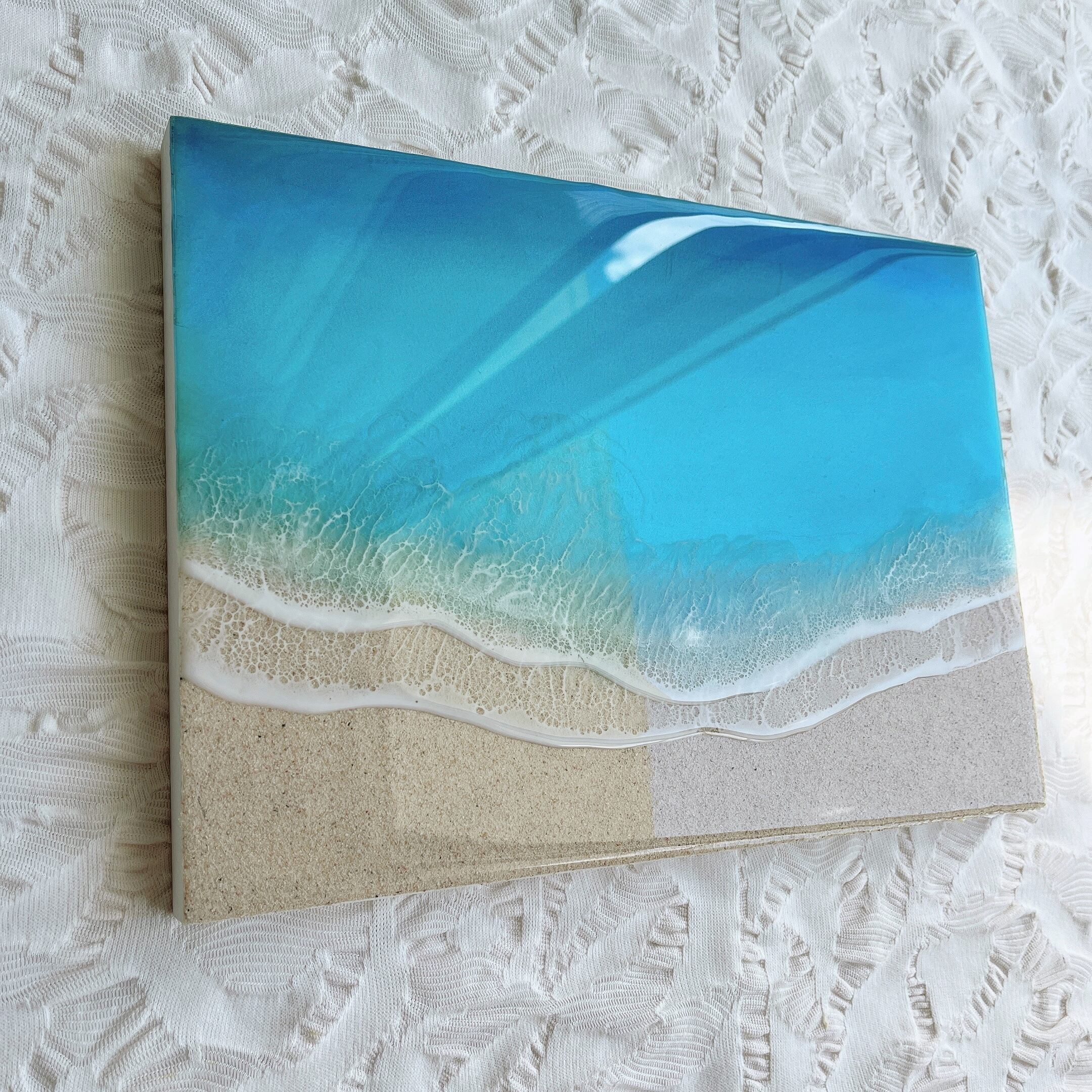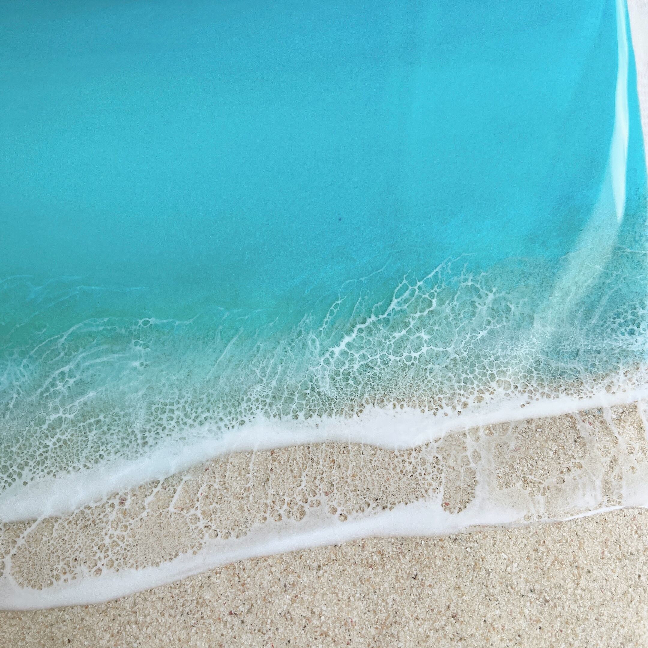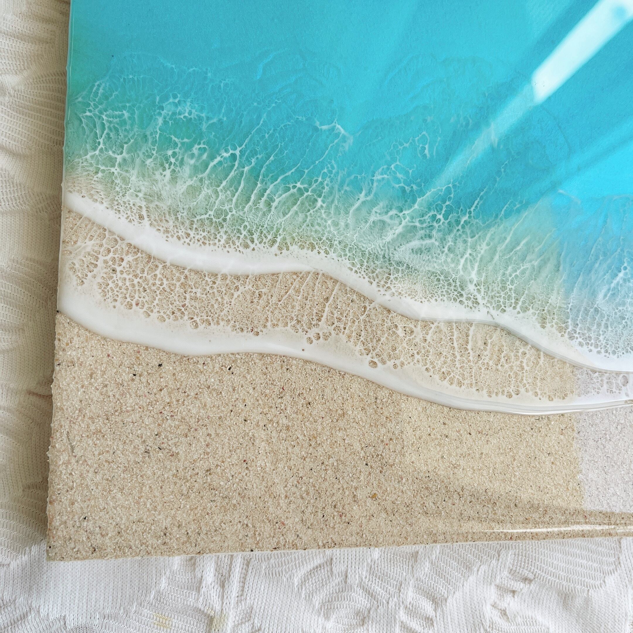 ウッドパネルに、エポキシ樹脂を着色し、層を重ねて奥行きと透明感を出しています。