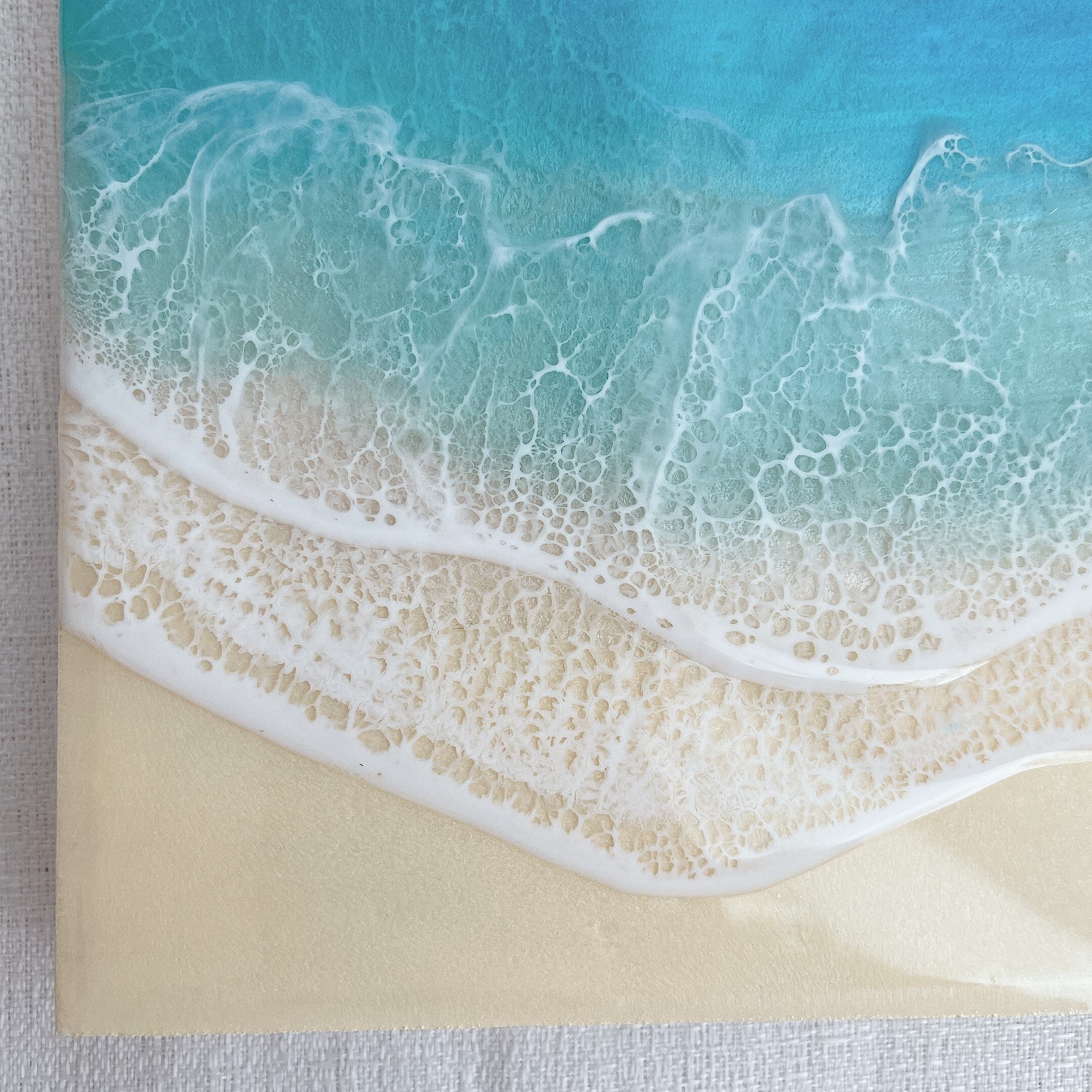 ウッドパネルに、エポキシ樹脂を着色し、層を重ねて奥行きと透明感を出しています。