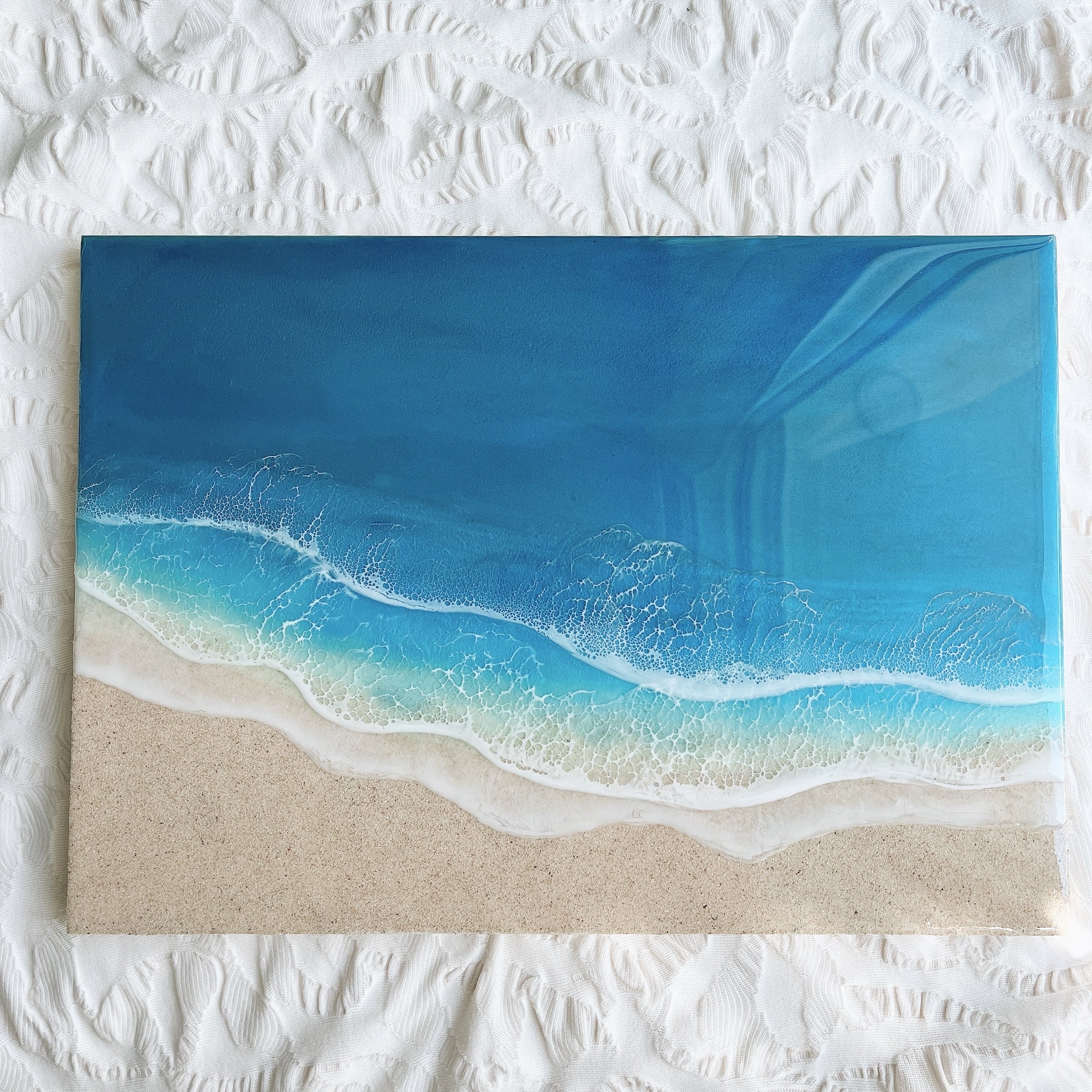 濃い色合いの海を表現し、波を3層重ねました(^^)