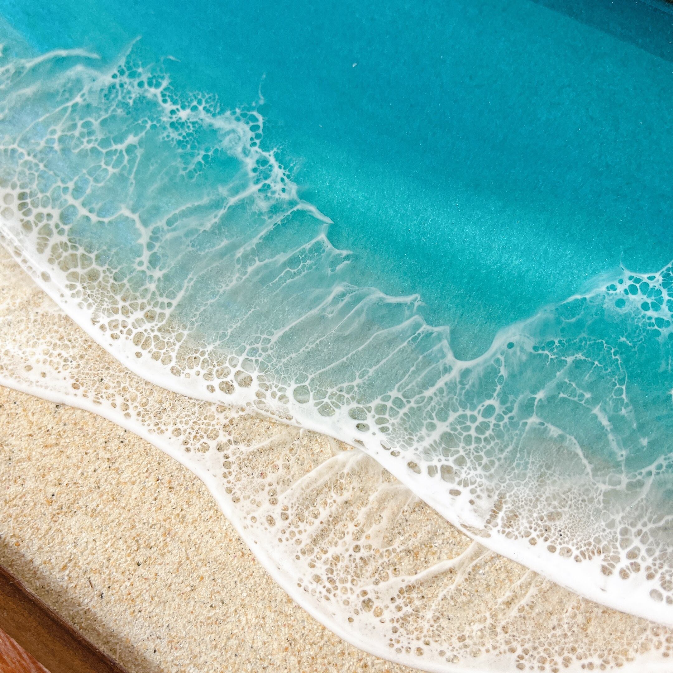 穏やかな波と深くて透明感のある海をイメージして製作しました。