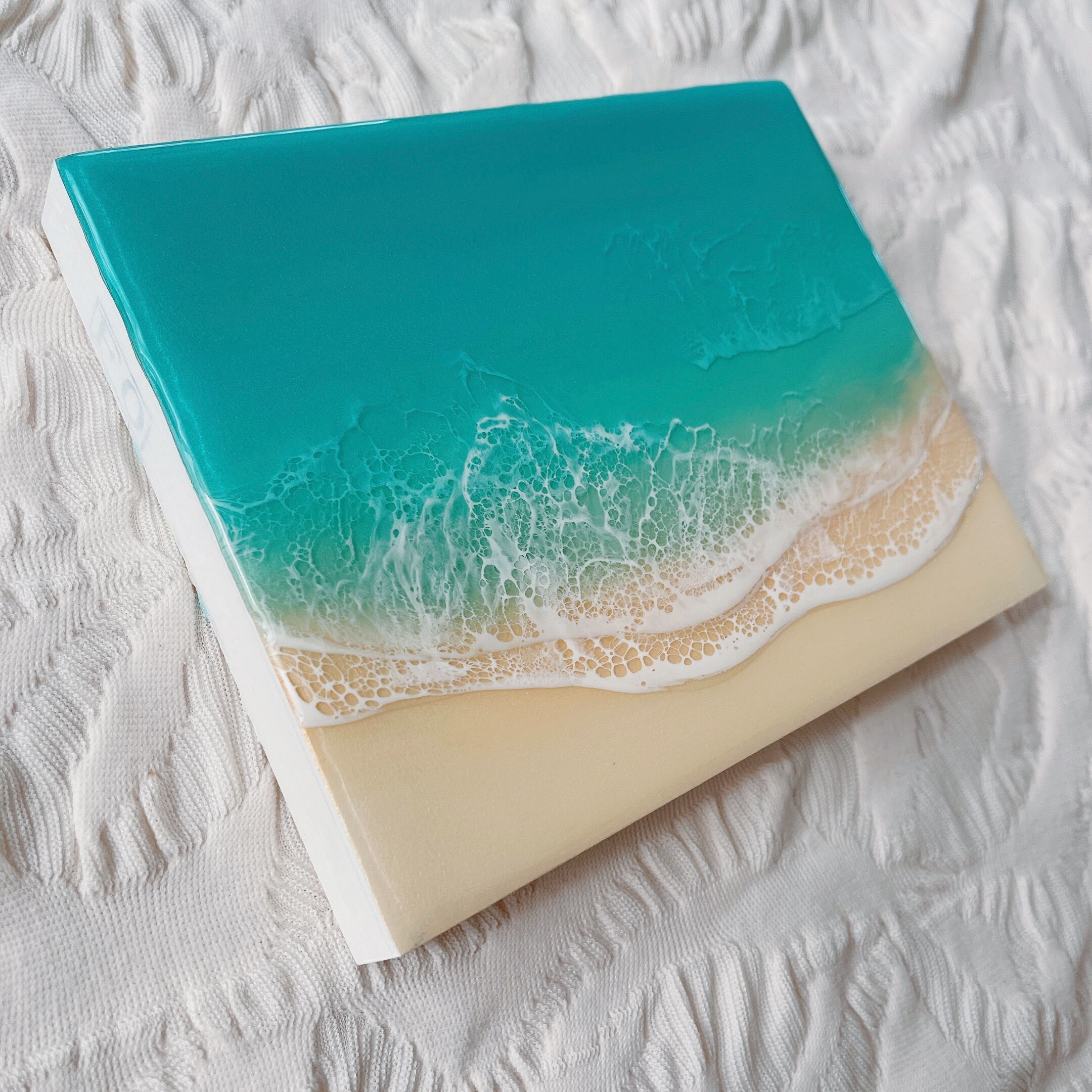 ウッドパネルに、エポキシ樹脂を着色し、層を重ねて奥行きと透明感を出しています。