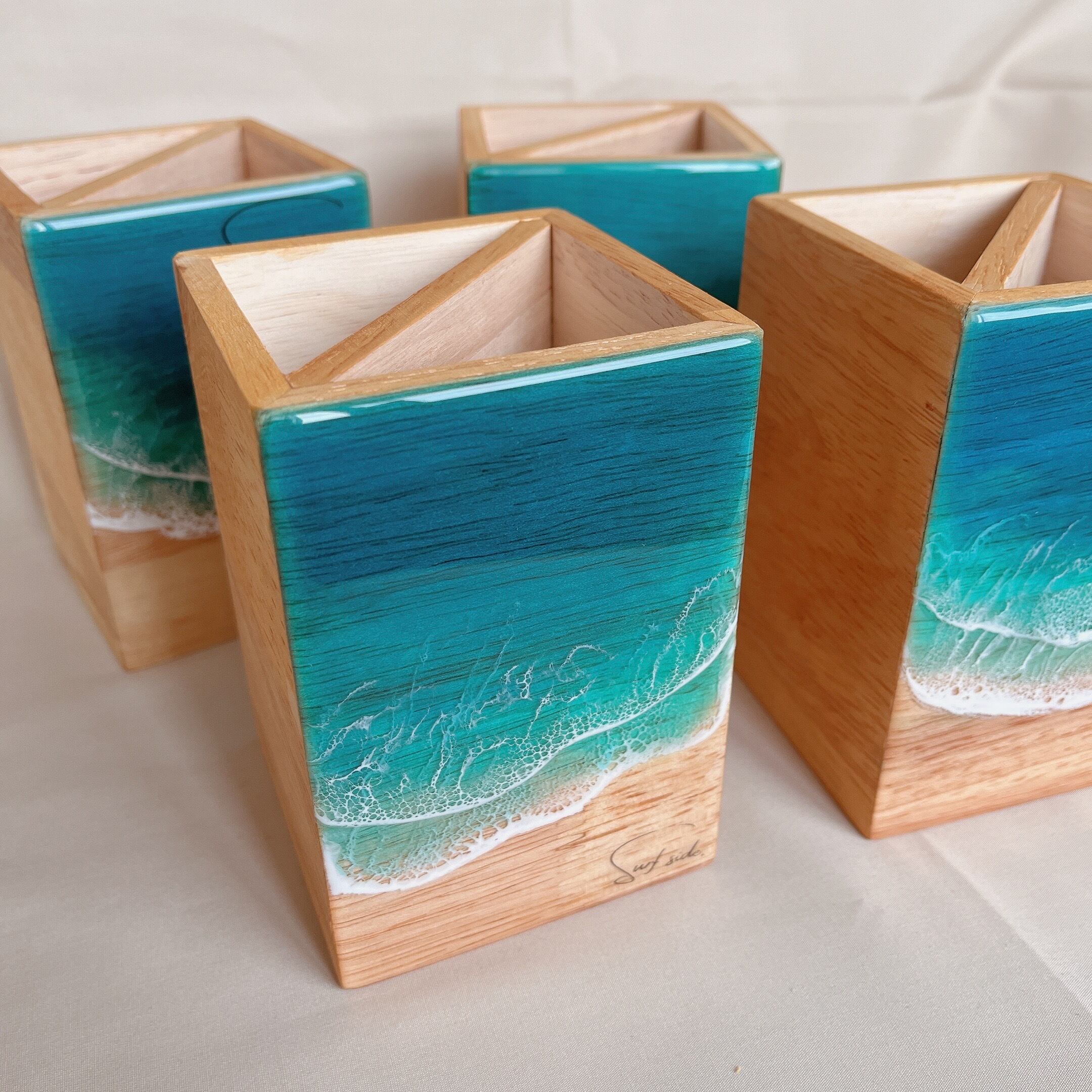 柔らかな波のデザインと温もりを感じる木目が特徴のこのペン立ては、海の情景をインテリアに取り入れたい方にぴったりです♪ デスクや書斎に鮮やかな彩りを✨